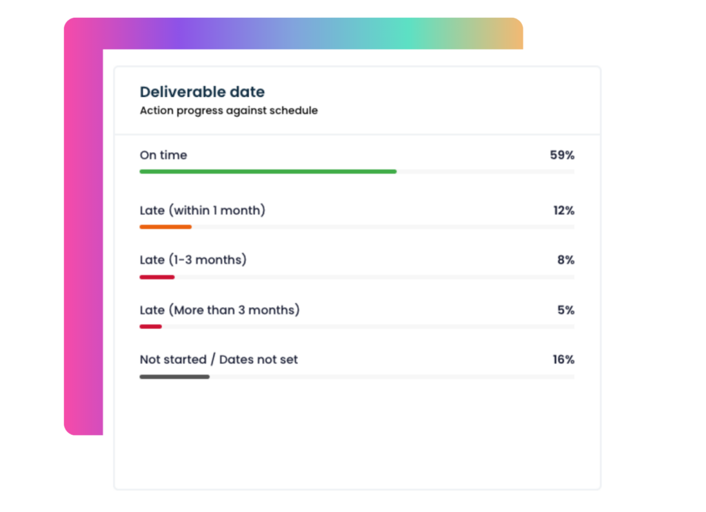 Actions move through a simple workflow of Not started, In progress and Completed, making momentum and blockers immediately visible.